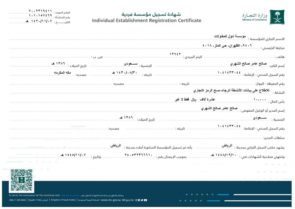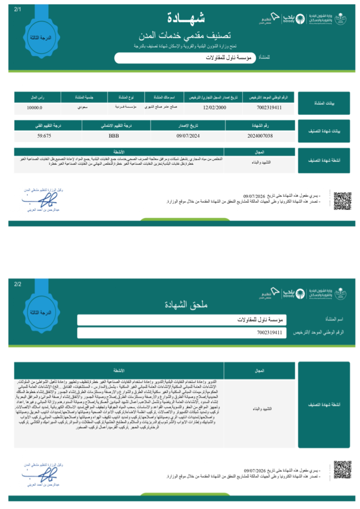 لدينا جميع الشهادات والاوراق والتراخيص التي تتطلبها الجهات الحكومية او المكاتب الخاصة ونحن نحرص كل الحرص بالاهتمام بهذه الشهادات والتراخيص .